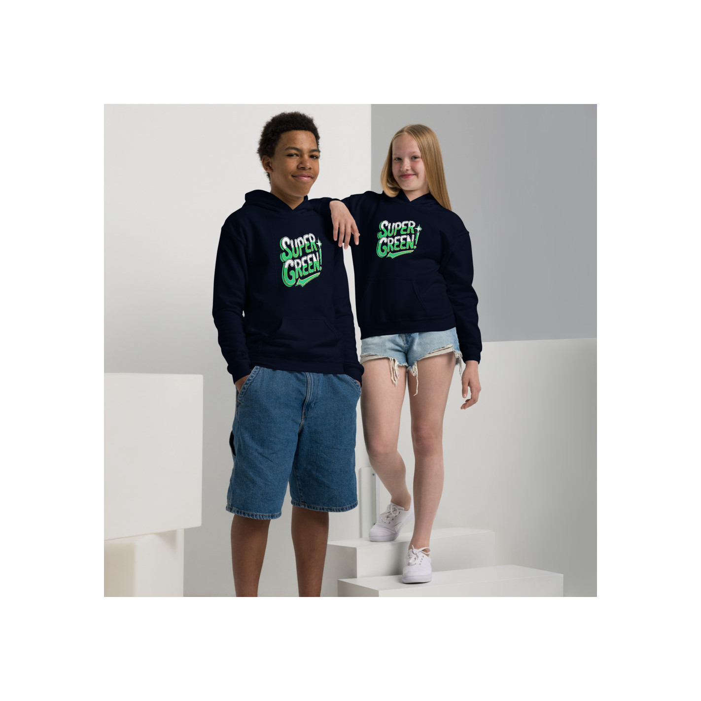Sweat à capuche épais pour les jeunes SUPER GREEN